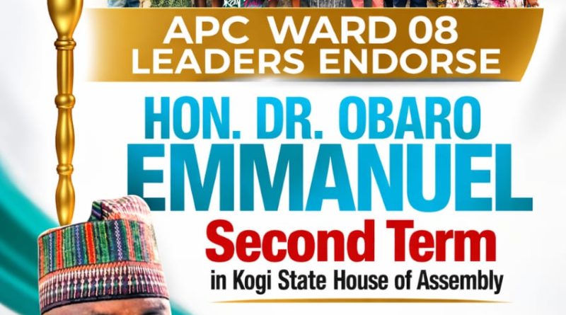 Isanlu, Kogi State – Leaders and executives of the All Progressives Congress (APC) in Ward 08 have unanimously endorsed the member representing Yagba East State Constituency in the Kogi State House of Assembly, Hon. Dr. Emmanuel Obaro, for a second term ahead of the 2027 general elections.